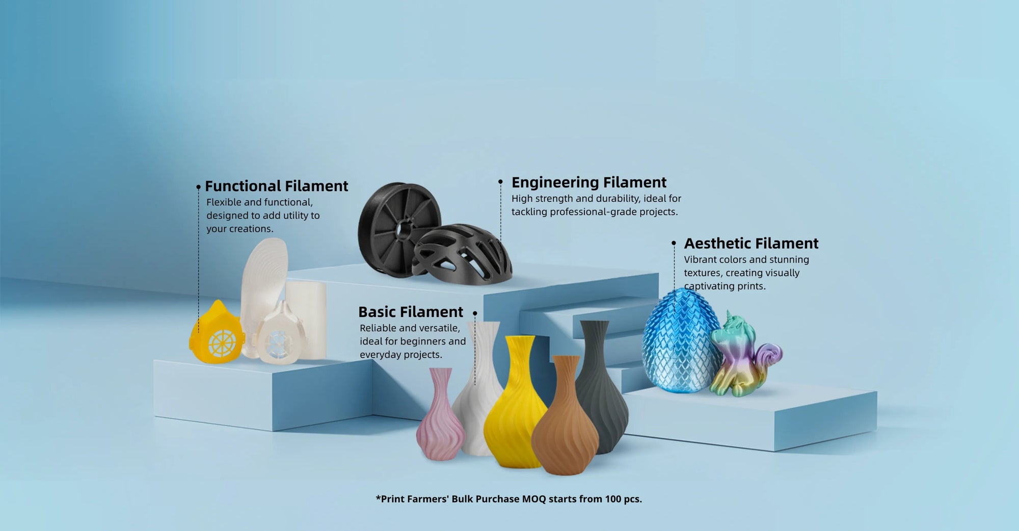 Flashforge has 4 categories, more than 75 types of filaments and more than 450 colors.